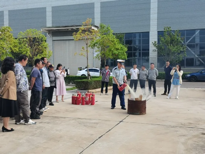 隨后,消防培訓(xùn)師及參訓(xùn)人員一同前往產(chǎn)業(yè)園區(qū),培訓(xùn)師就如何正確操作廠房?jī)?nèi)外配置的消防設(shè)施親自示范教學(xué),之后員工輪流使用滅火器進(jìn)行滅火演練,確保在火災(zāi)發(fā)生時(shí)能夠迅速、有效地進(jìn)行滅火。